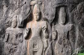 Buduruwagala, an ancient rock temple near Wellawaya, Sri Lanka, is an ideal stop if you’re traveling from Ella to the southern region. Dating back to the 10th century, the site features seven impressive rock-cut statues, including the towering 51-foot figure of the Buddha, believed to be “Deepankara Buddha.” Faint traces of vibrant colors still visible on the statues hint at their former brilliance, offering visitors a glimpse into the temple’s historical grandeur. A visit here is perfect for those interested in Sri Lanka’s rich history and spiritual heritage.