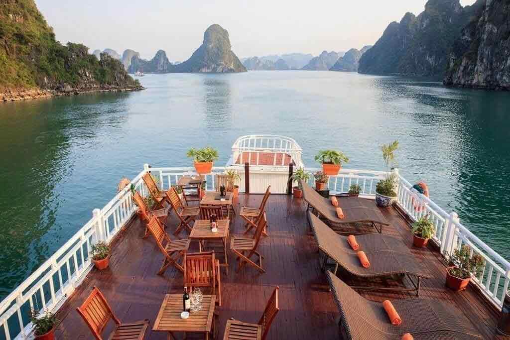 ♦ 12h00 – 12h30: Embark Halong Cruise. Enjoy a welcome drink and get a brief introduction about the cruise and safety guidelines. Check in to your cabin.